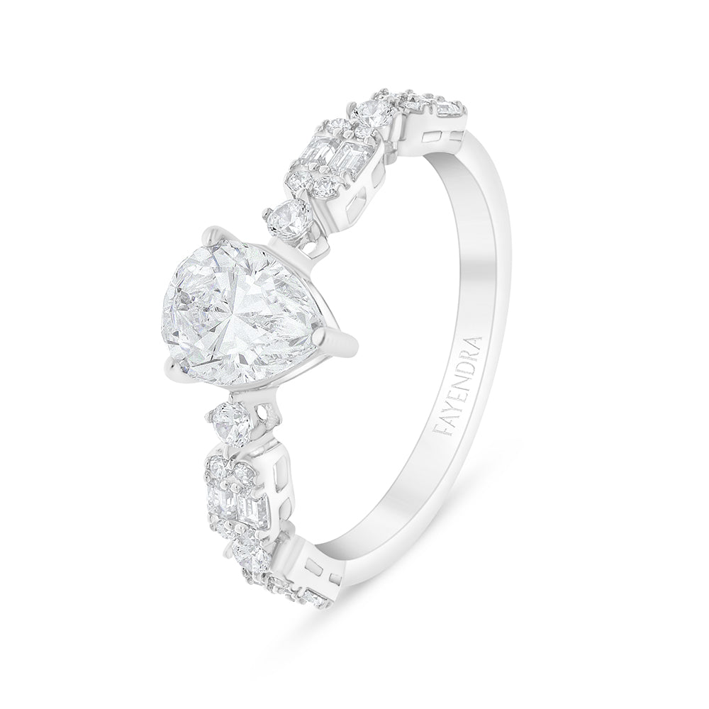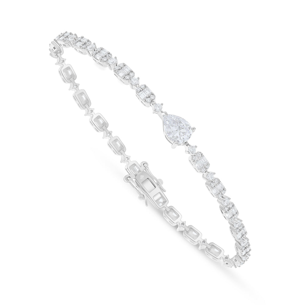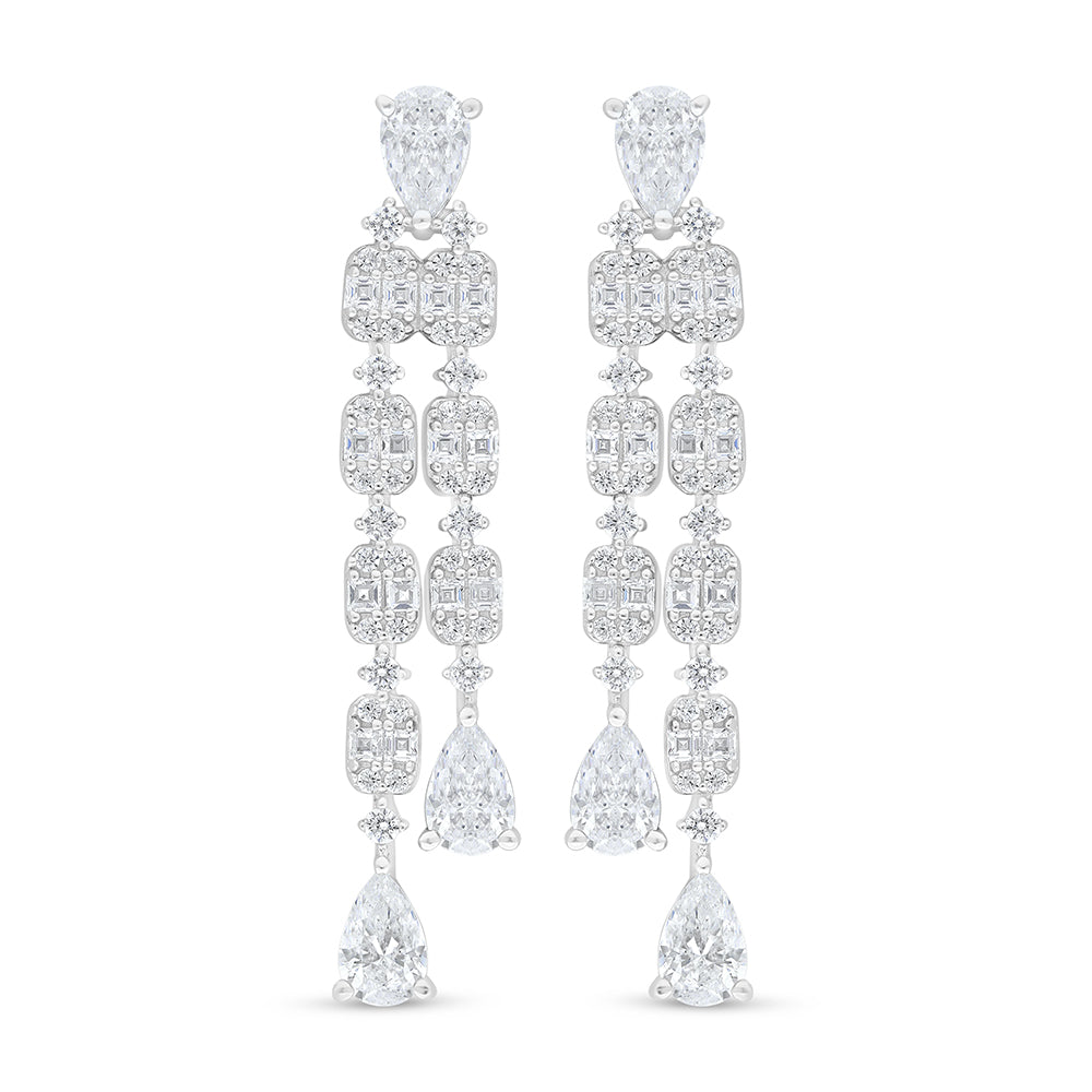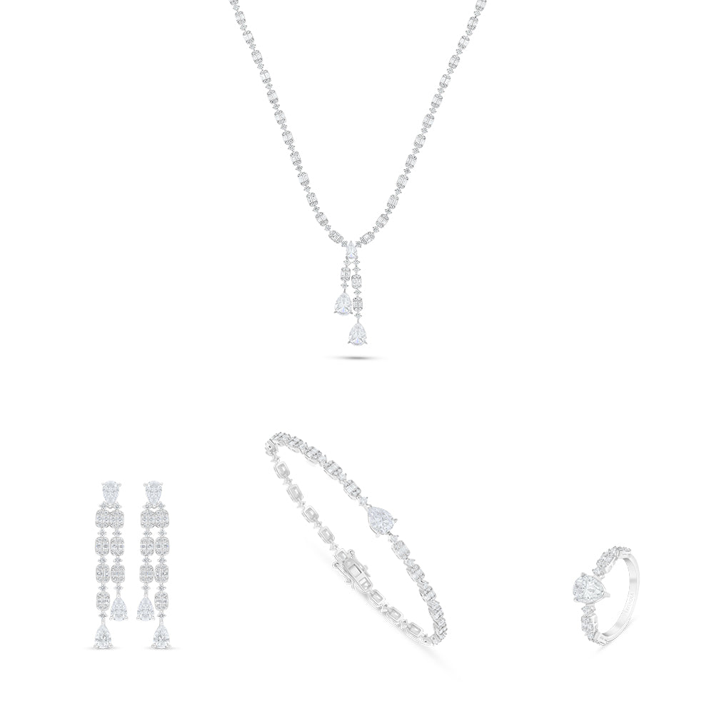 طقم من الفضة الخالصة عيار 925 مطلي روديوم مرصع فص ابيض