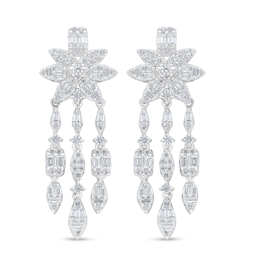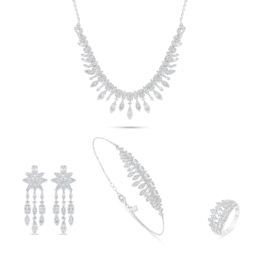 طقم من الفضة الخالصة عيار 925 مطلي روديوم مرصع فص ابيض