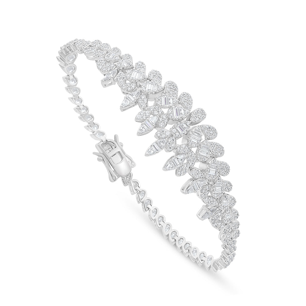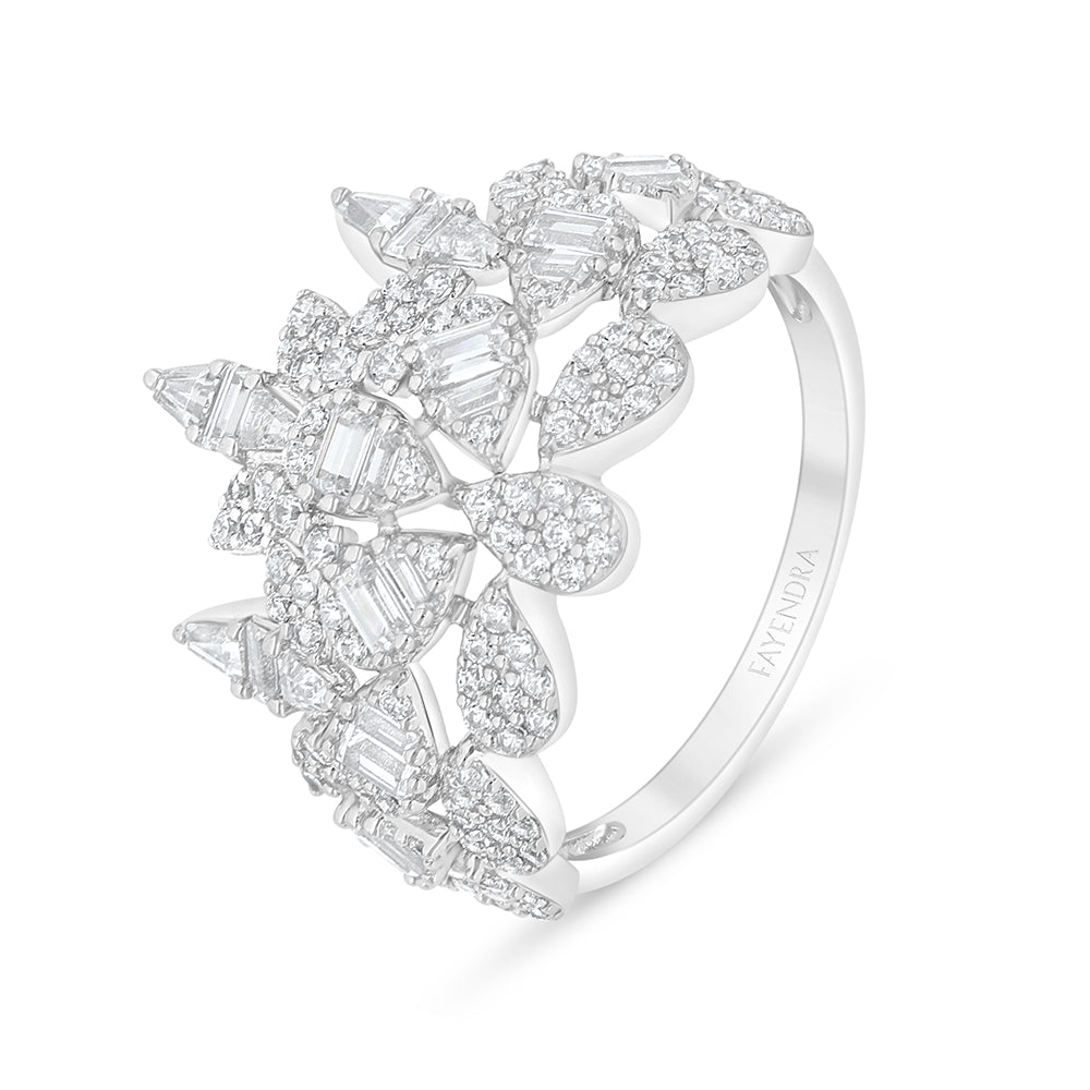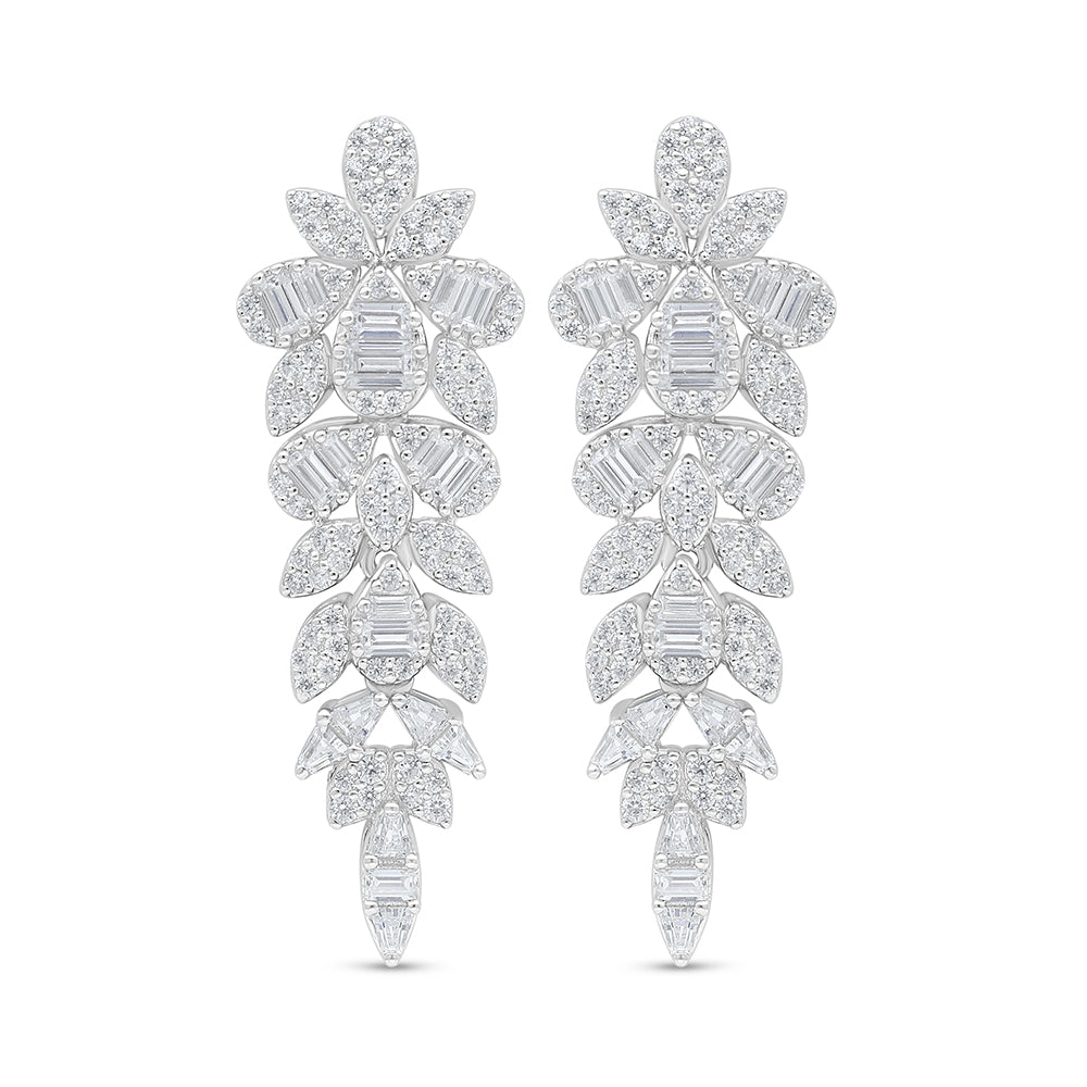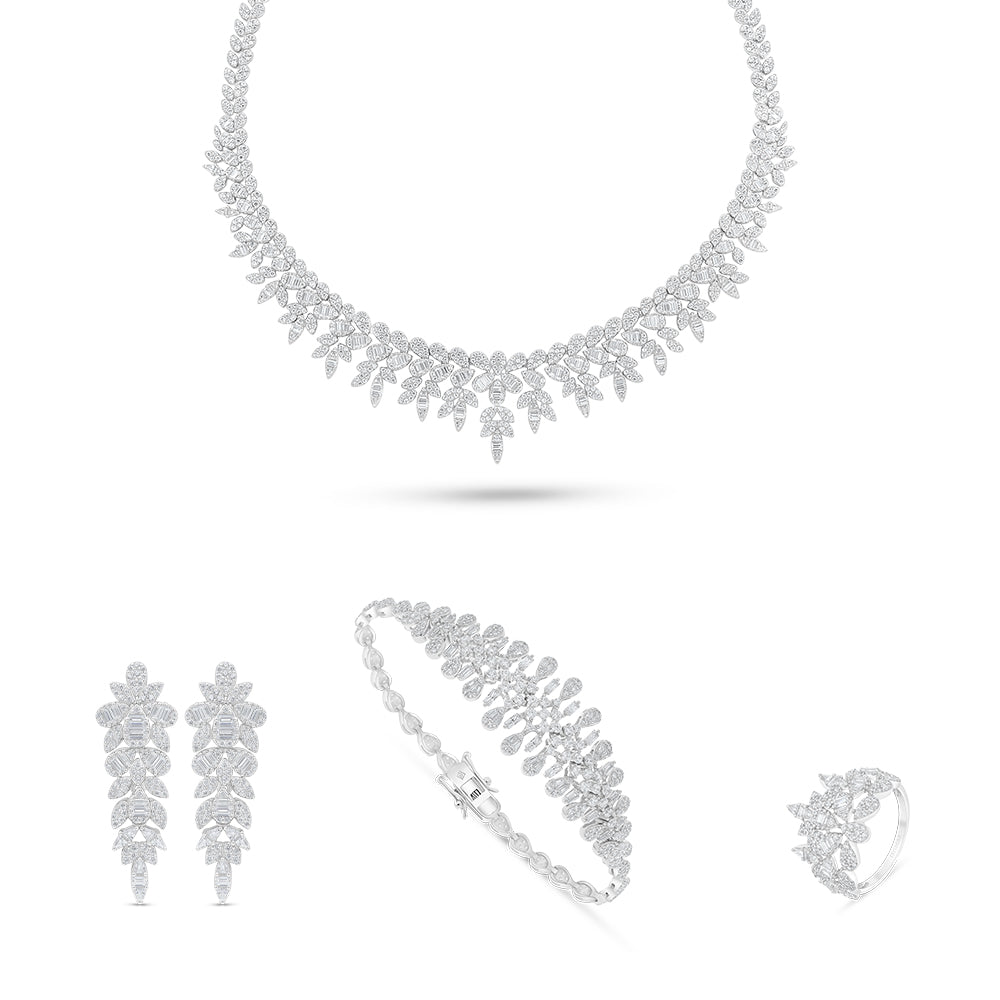 طقم من الفضة الخالصة عيار 925 مطلي روديوم مرصع فص ابيض