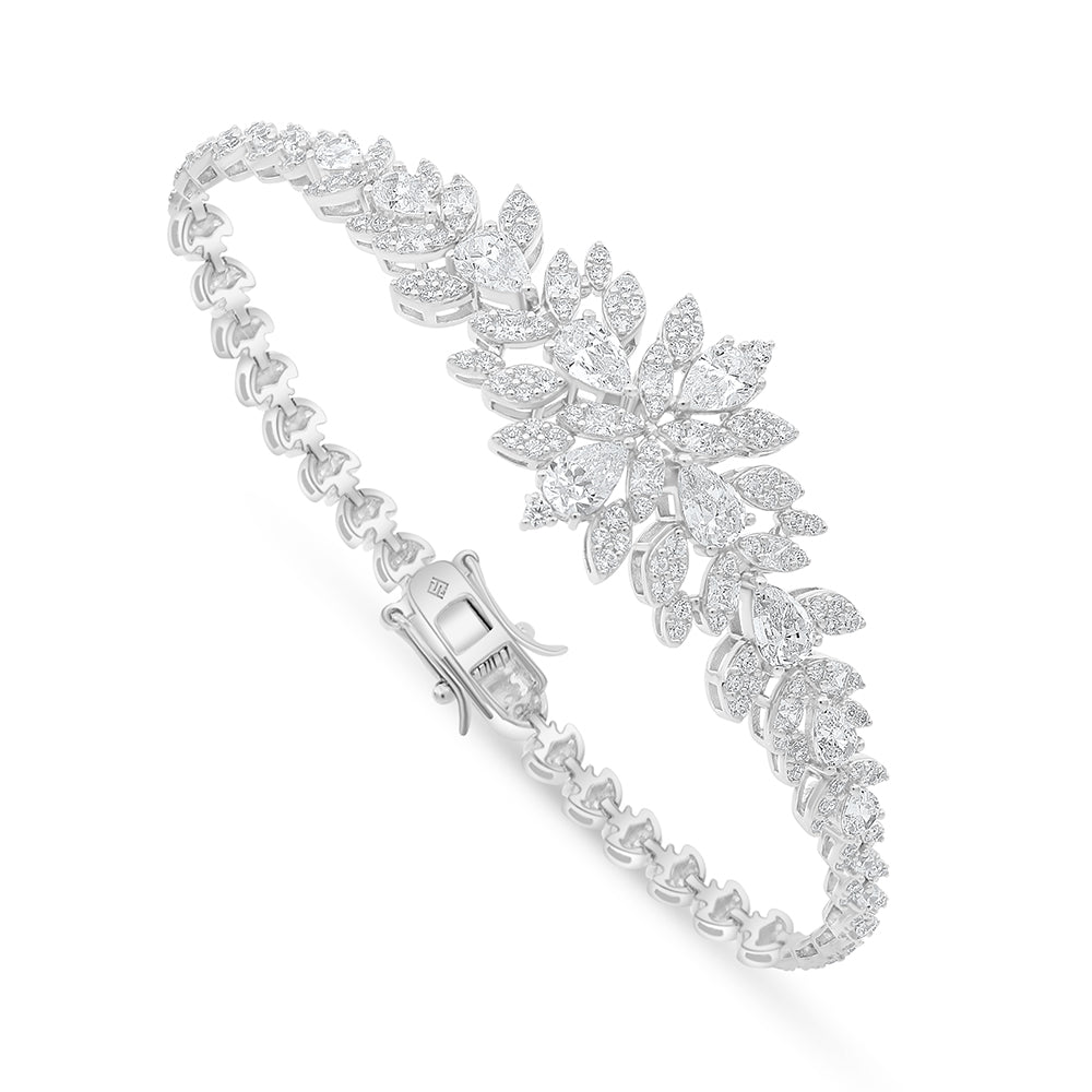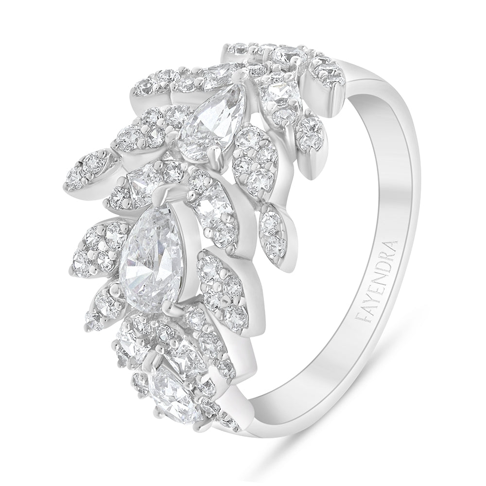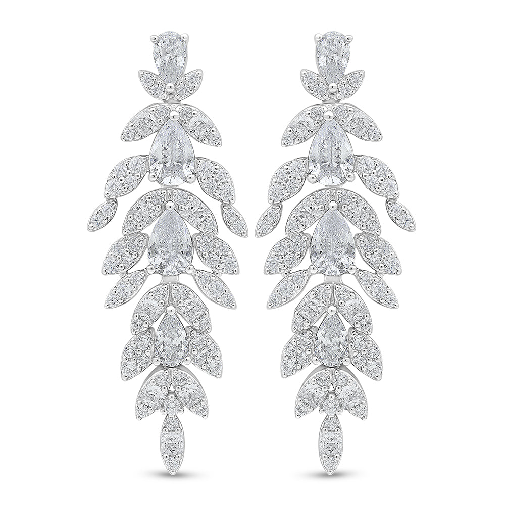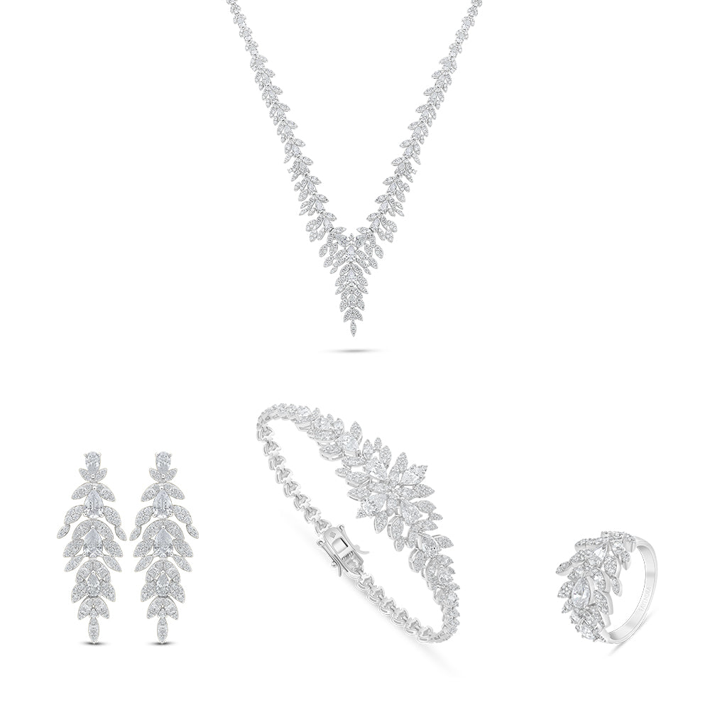 طقم من الفضة الخالصة عيار 925 مطلي روديوم مرصع فص ابيض