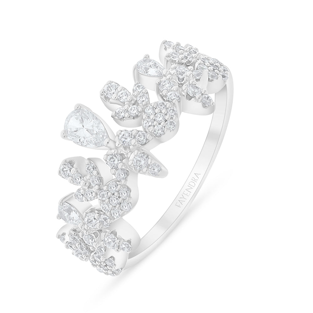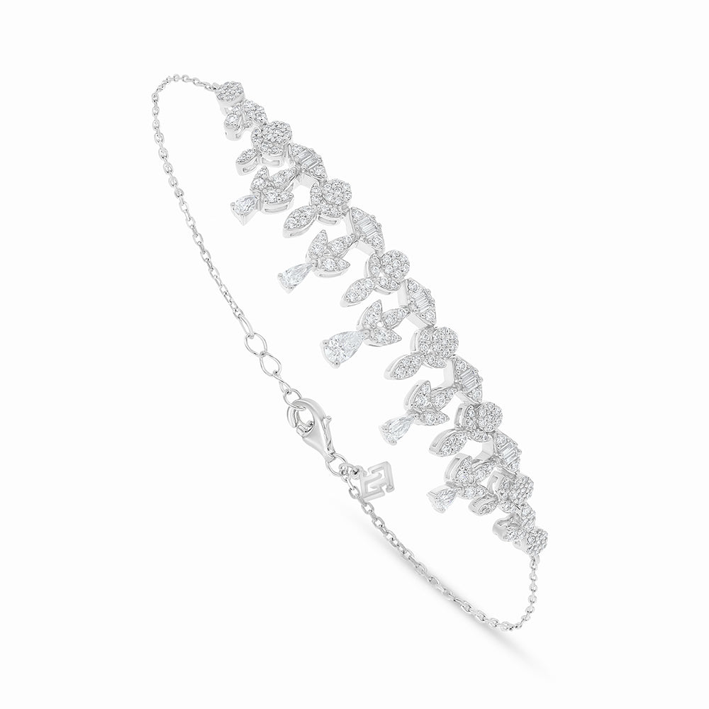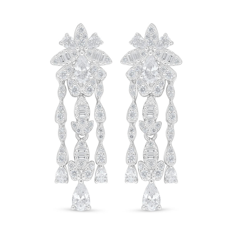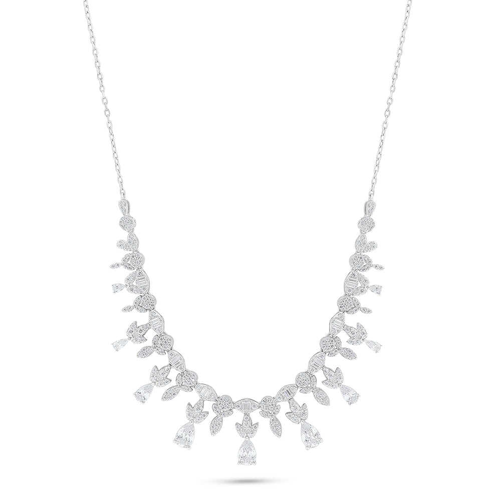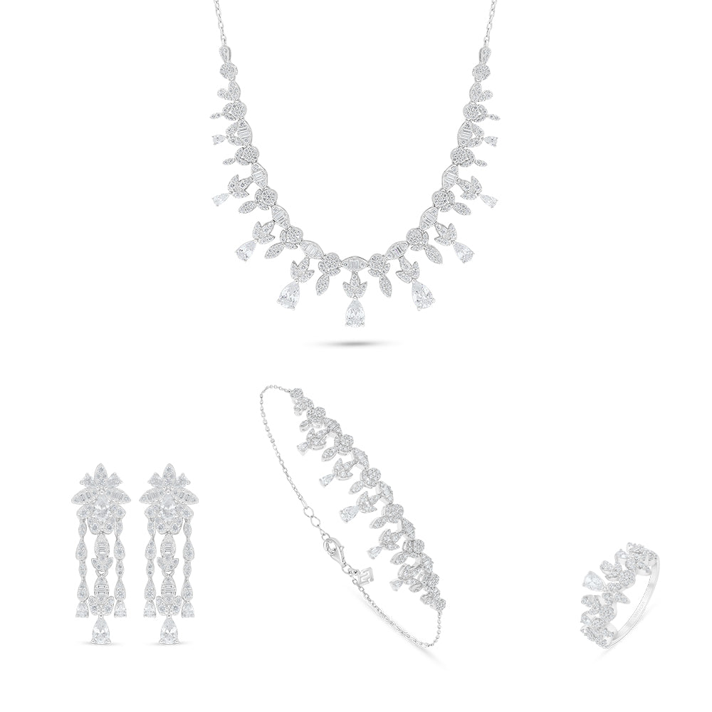 طقم من الفضة الخالصة عيار 925 مطلي روديوم مرصع فص ابيض