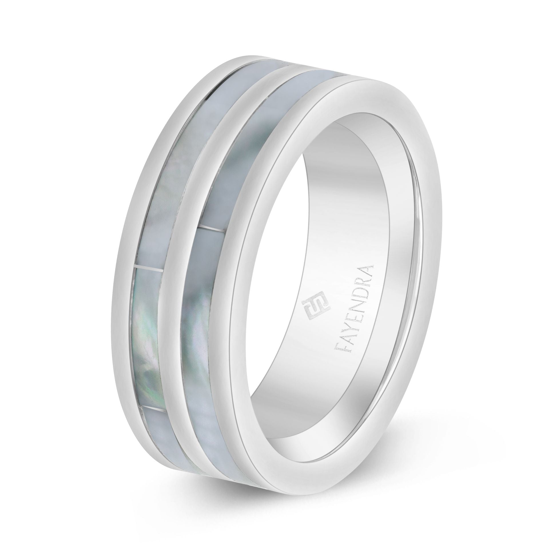 دبلة رجالي مصنوعة من التونغستان كاربيد بلون الستيل و احجار صدف ابيض