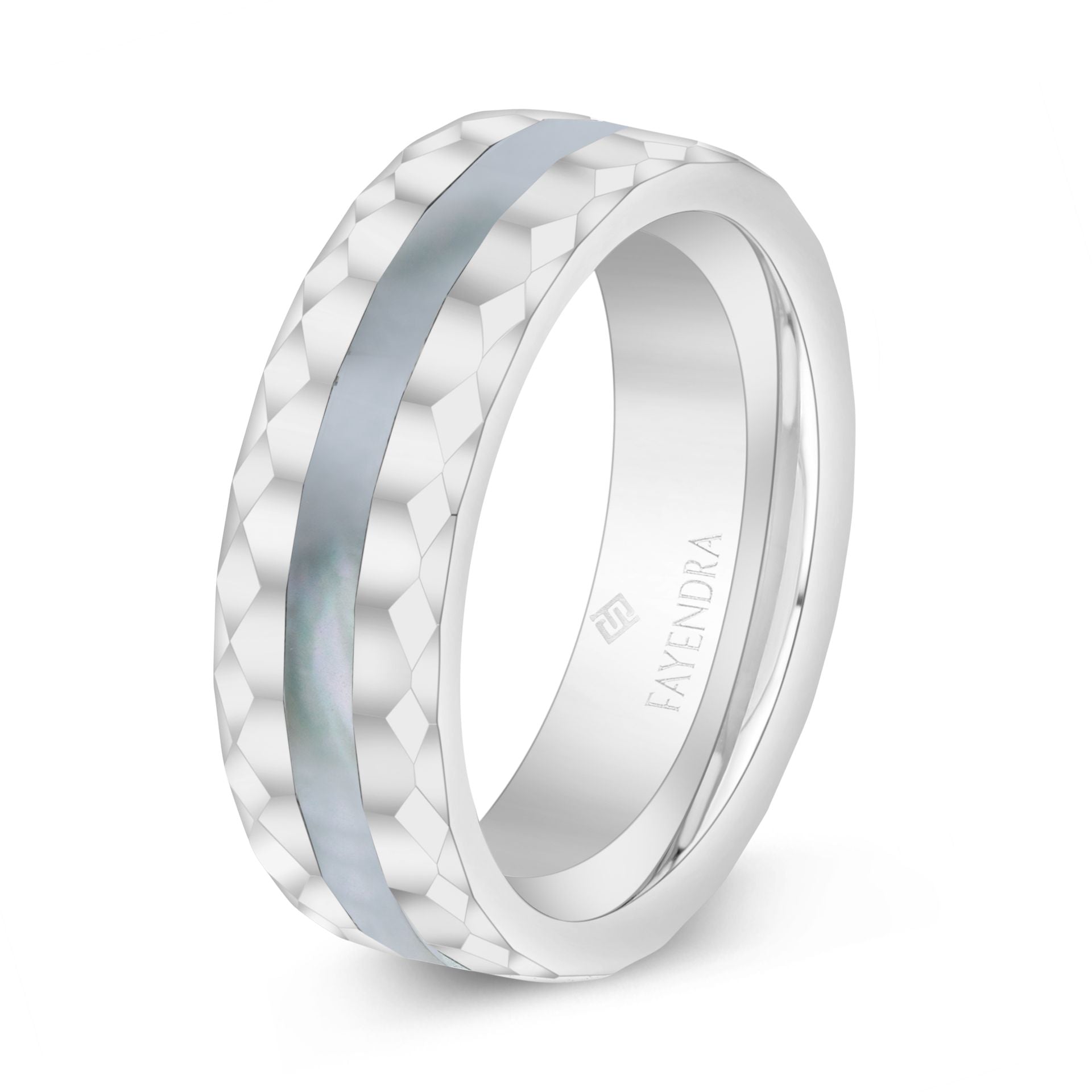 دبلة رجالي مصنوعة من التونغستان كاربيد بلون الستيل و احجار صدف ابيض